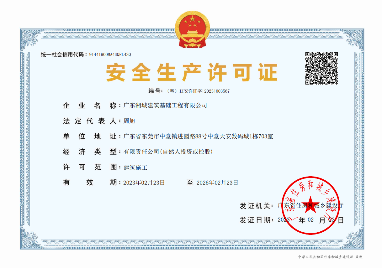 廣東湘城建筑基礎(chǔ)工程有限公司,成立于2016年,注冊(cè)資金4888萬元,持有地基基礎(chǔ)工程專業(yè)承包壹級(jí)資質(zhì),具有安全生產(chǎn)許可證。可承接各種基礎(chǔ)類施工,包括各類樁基礎(chǔ)、基坑支護(hù)、邊坡支護(hù)、地基強(qiáng)夯處理等施工業(yè)務(wù)。公司為地基與基礎(chǔ)工程專業(yè)承包、工程施工、技術(shù)咨詢、技術(shù)開發(fā)、技術(shù)服務(wù)、信息咨詢實(shí)體型企業(yè)。